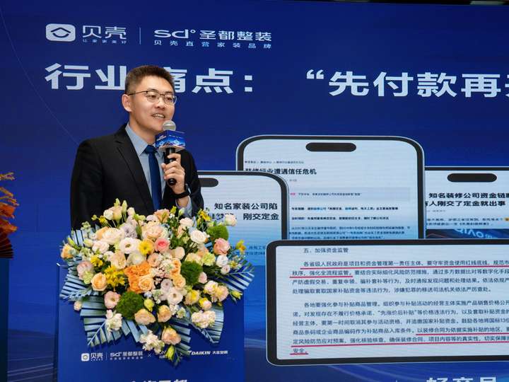 在發(fā)布會現(xiàn)場,貝殼整裝對外關(guān)系與發(fā)展中心總經(jīng)理鄭深圳在發(fā)言中系統(tǒng)性闡述了資金存管服務(wù)的核心價值。他介紹到,資金存管在形式上是一項(xiàng)服務(wù),但本質(zhì)上是構(gòu)建與消費(fèi)者的信任紐帶,其“滿意再付款”的樸素理念直擊裝修行業(yè)預(yù)付模式下的資金風(fēng)險痛點(diǎn)。鄭深圳指出,貝殼之所以能率先在家裝領(lǐng)域推行此項(xiàng)服務(wù),源于其“對客戶好”的基因與在居住領(lǐng)域積累的深厚能力。他強(qiáng)調(diào),推行資金存管的核心在于“將選擇權(quán)交還給消費(fèi)者”,這不僅是企業(yè)服務(wù)的創(chuàng)新,更是推動行業(yè)建立基本信任線、走向規(guī)范透明的重要實(shí)踐。